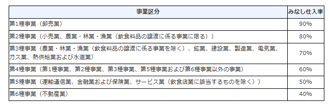 具体的には、その納税地の所轄税務署長に「消費税簡易課税制度選択届出書」を提出した課税事業者は、その基準期間(個人事業者は前々年、法人は原則として前々事業年度)における課税売上高が5,000万円以下の課税期間について、売上げに係る消費税額に、事業の種類の区分(事業区分)に応じて定められたみなし仕入率を乗じて算出した金額を仕入れに係る消費税額として、売上げに係る消費税額から控除することになります。